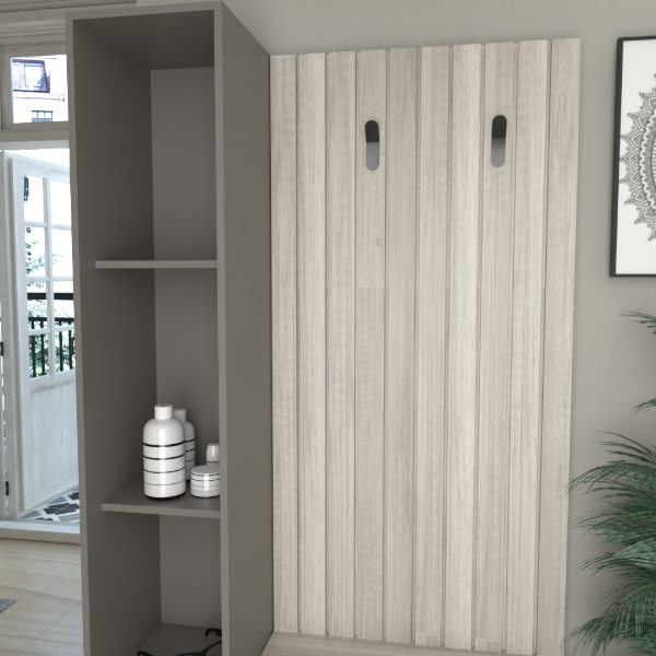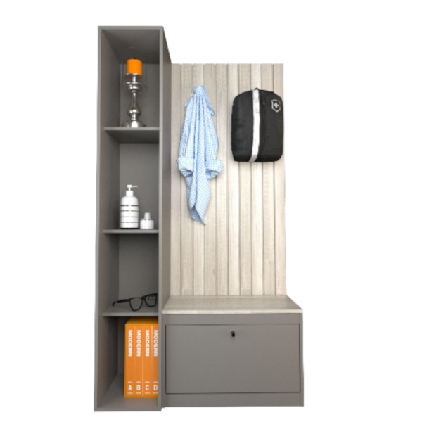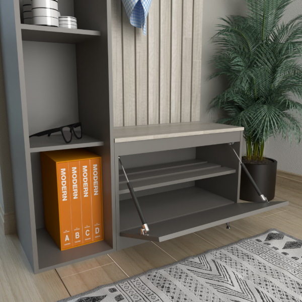 • Los percheros metálicos integrados brindan un espacio adicional para colgar abrigos y accesorios.