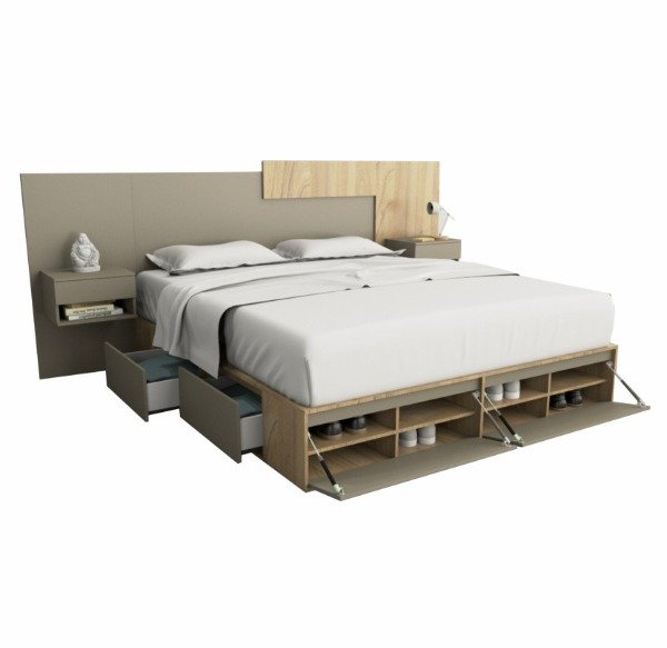 Cama Box 2 x 2 + Respaldo (Olmo/Gris C) COG