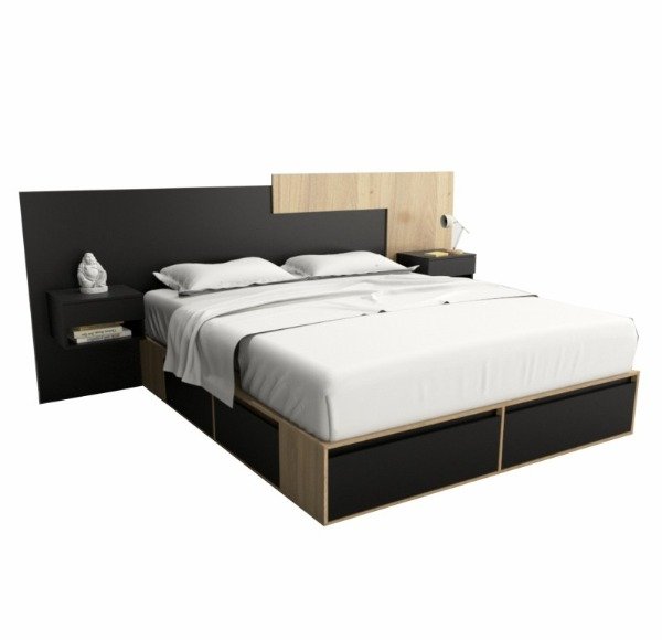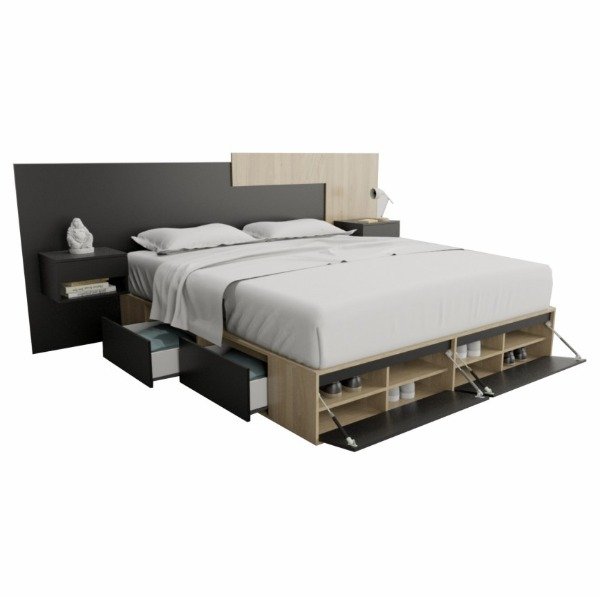 Cama Box 2 x 2 + Respaldo (Olmo/Negro) CON