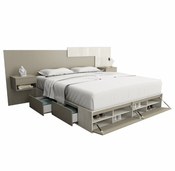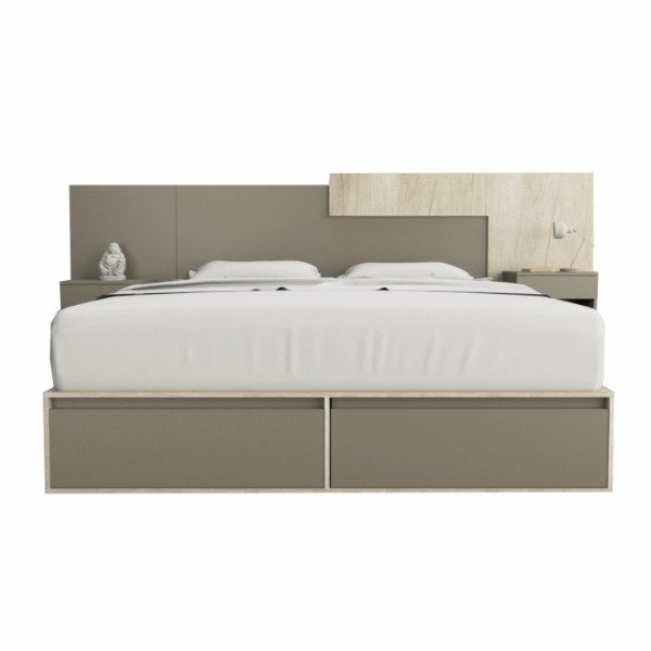 Cama Box KING 1.80 x 2.00 + Respaldo (Nevado/Gris C) NCG