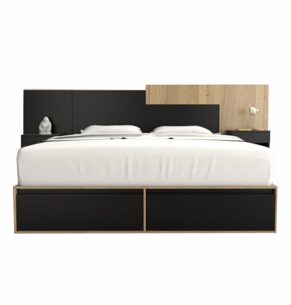 Cama Box KING 1.80 x 2.00 + Respaldo (Olmo/Negro) CON