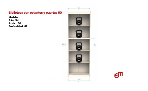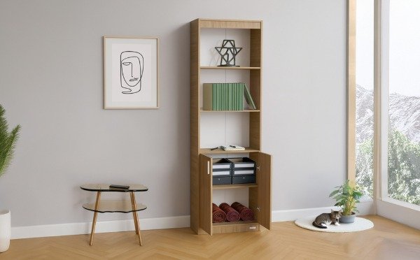 La BIBLIOTECA CON ESTANTES Y PUERTAS es un producto de estética más standard que ofrece la posibilidad de tener un espacio de resguardo de tus libros y papeles más importantes, a su vez contando con los estantes para lo que necesites más al alcance de tu mano