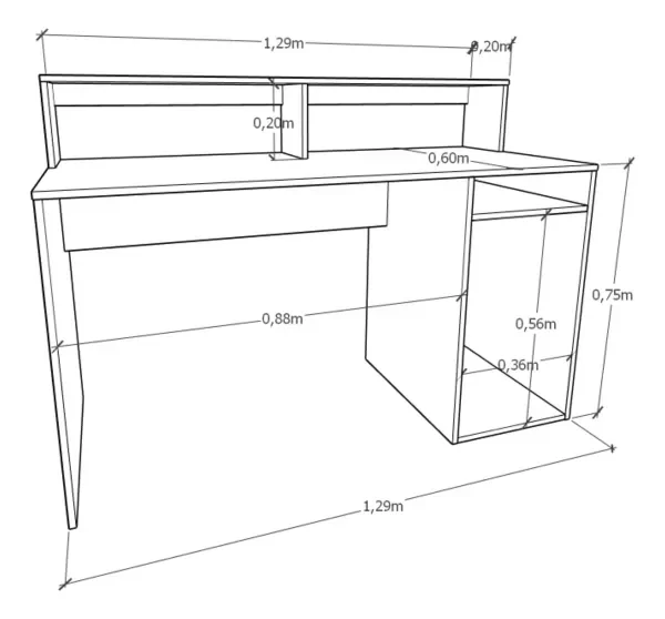 Alto escritorio: 0,75 m / Alto con alzada: 0,95 m