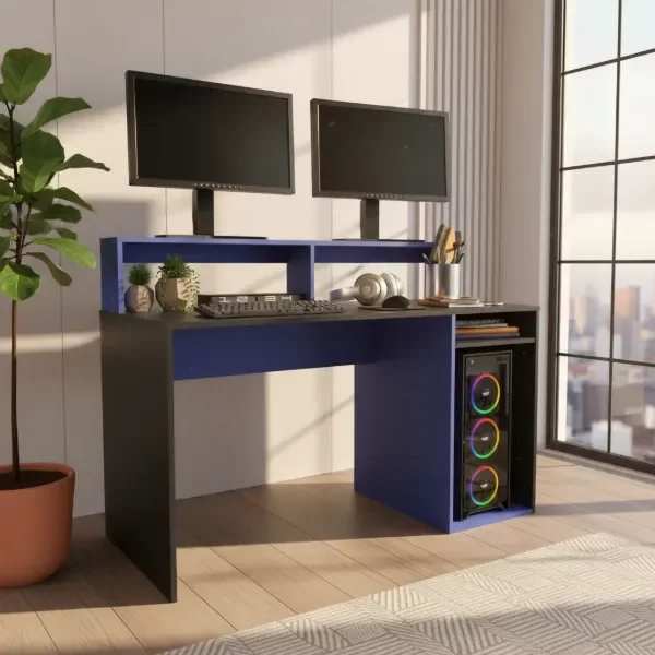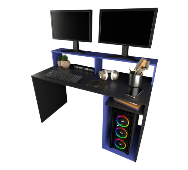 Escritorio Gamer con Alzada (Negro/Azul)