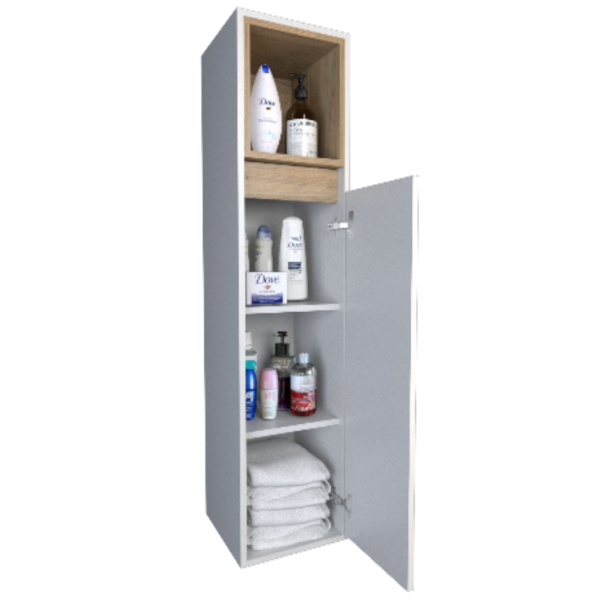 ✓ Contiene 4 estantes, 1 abierto y los otros 3 internos con 1 puerta con bisagras metálicas