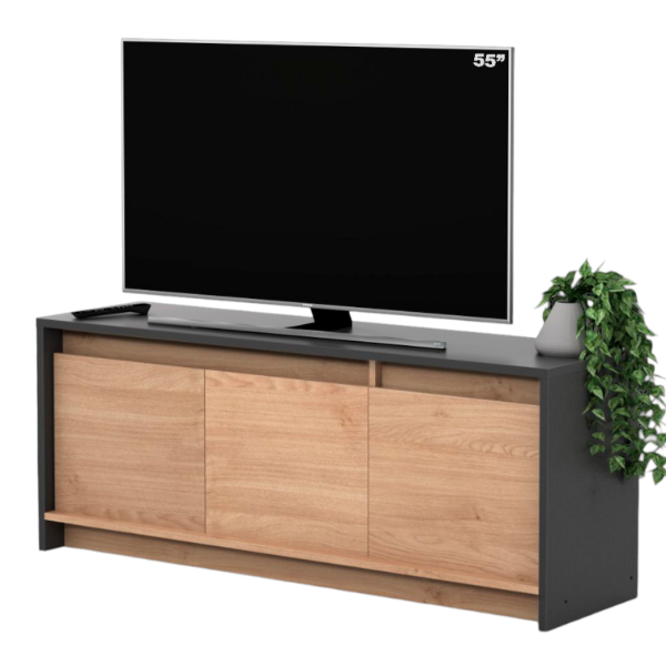 Ofrece tres puertas con dos estantes versátiles para organizar objetos funcionales y decorativos según sus necesidades. El producto debido a sus dimensiones esta preparado para soportar un televisor de hasta 55''.