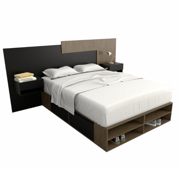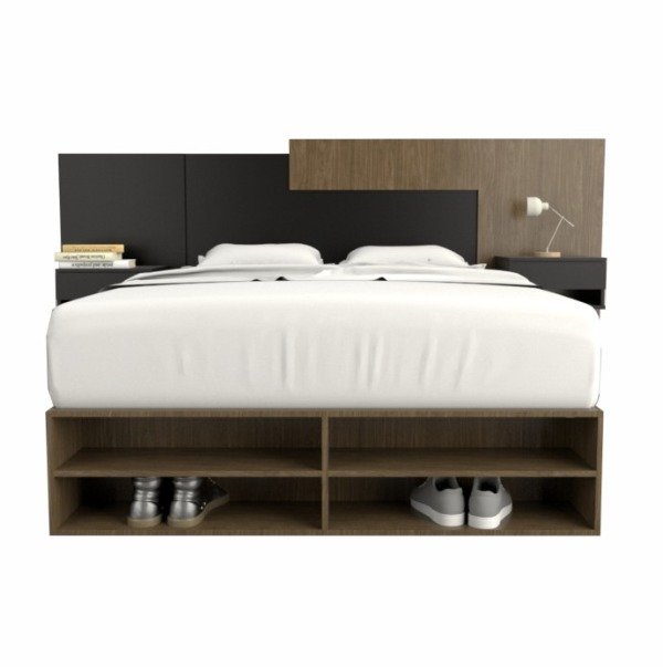 Cama Box + Respaldo 1.40 x 1.90 m (2 plazas Nogal/Negro) CNN
