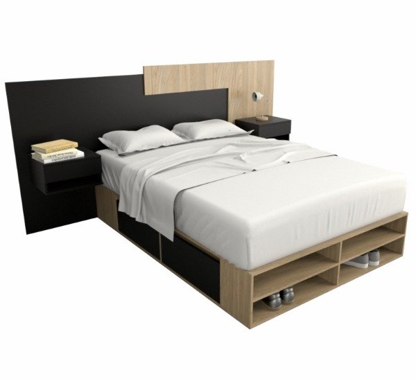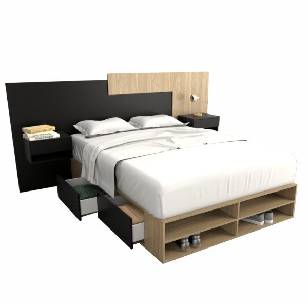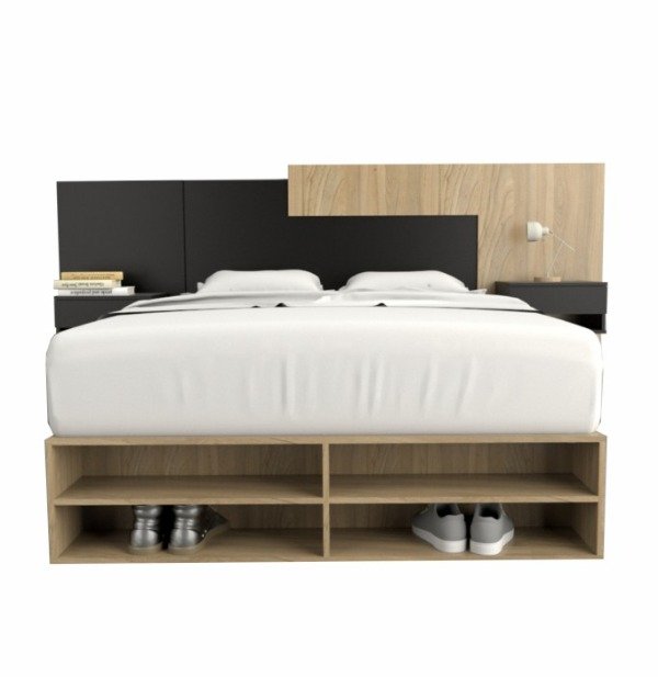 Cama Box + Respaldo 1.40 x 1.90 m (2 plazas Olmo/Negro) CON