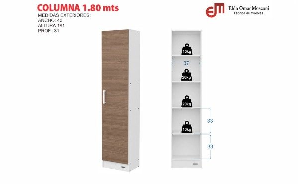 La COLUMNA 180 - 1 PUERTA es un organizardor con puerta que lo puedes utilizar como despensero para guardar cosas que necesitas que queden mas protegidas del polvo o de la luz, o simplemente prefieres que no queden a la vista.