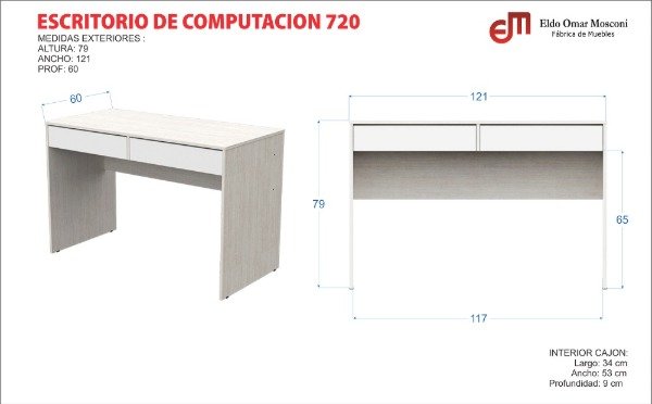 El ESCRITORIO DE COMPUTACIÓN 720 es producto de líneas simples, con una superficie amplia que brinda un gran espacio de trabajo. Cuenta con dos cajones con correderas metálicas que te permitirán acomodar mejor tus úiles y papeles