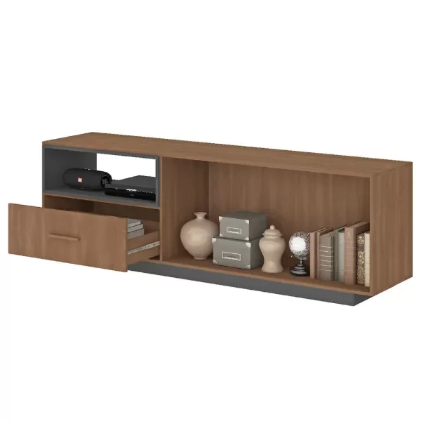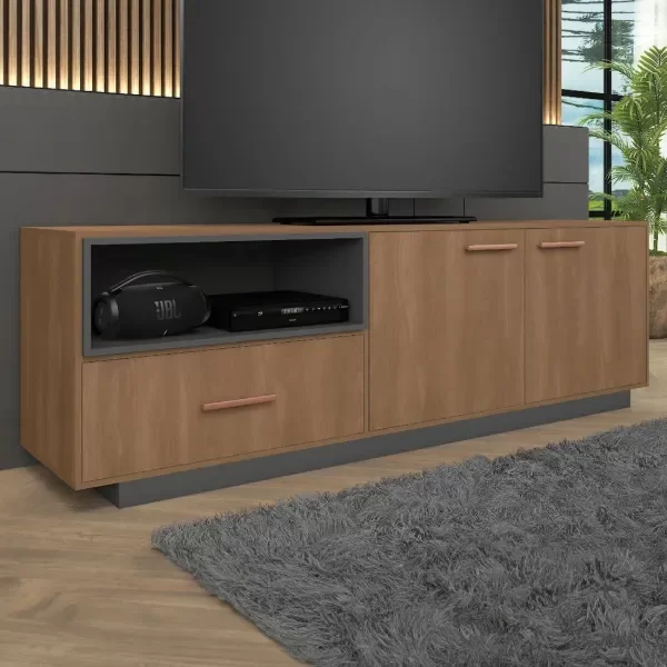 ¿Qué te parece el estante Everest? Con él, creas un ambiente encantador y una organización impecable, para que tu hogar esté siempre listo para recibir invitados o disfrutar de momentos de relax. Además de ser perfecto para que tú y tu familia se relajen juntos, también cuenta con el espacio ideal para organizar dispositivos electrónicos como módems, videojuegos y, por supuesto, el televisor, mientras que los artículos decorativos se exhiben para añadir un toque de buen gusto. Su estructura de material resistente garantiza que la pieza perdure en tu decoración, mientras que su elegante diseño, combinado con una refrigeración versátil, hace que el mueble sea aún más bonito y esté listo para que tu rutina sea especial, tal como siempre lo has deseado.
